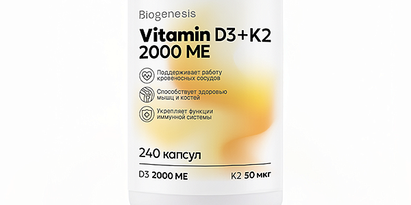 Biogenesis Витамин D3+K2 2000МЕ/50 мкг, капсулы 240 шт в наличии. Узнайте, как купить товар с бесплатной доставкой в Тверь, Ржев, Вышний Волочёк, Торжок, Кимры, Конаково, Удомля, Бежецк и другие населенные пункты Тверской области на странице «